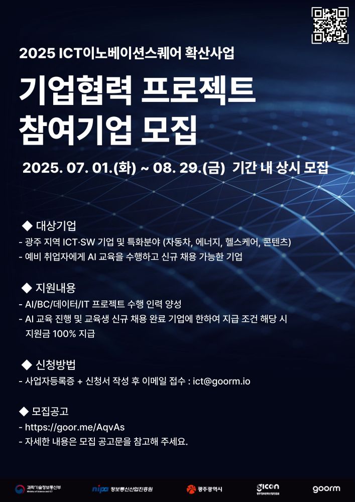 자세한 내용은 모집 공고문(https://ict-gwangju.goorm.io/companies-apply) 참고 부탁드립니다.