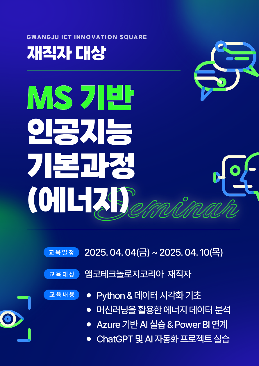 프로그램 신청 [광주] 재직자 대상 MS 기반 인공지능 기본과정(에너지) 2 지원일정 신청 종료 프로그램 일정 2025-04-04 ~ 2025-04-10 장소 오프라인 지역 구분 광주 프로그램 구분 단기과정 정원 0 / 명 신청양식 Download 주요내용 목록